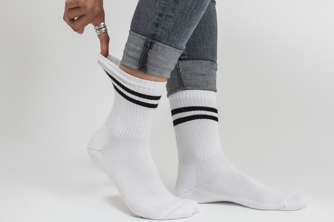 Unsere Retro-Tennissocken für Damen (Modell: Serena) sind perfekt für Sport und Freizeit. Mit der Crew Länge und dem elastischen Bund bieten sie nicht nur optimalen Halt und Komfort, sondern auch einen modischen Look. Die auffälligen Streifen erinnern an klassische Collegesocken und verleihen jedem Schritt eine jugendliche Energie. Egal, ob im Winter, Sommer, beim Volleyball oder Fitnessstudio - diese Socken sind vielseitig einsetzbar. Die retro-inspirierte Farbgebung in Weiß mit bunten Streifen lässt sie perfekt zu jeder Sportbekleidung oder zu deinem Lieblings-Outfit passen.