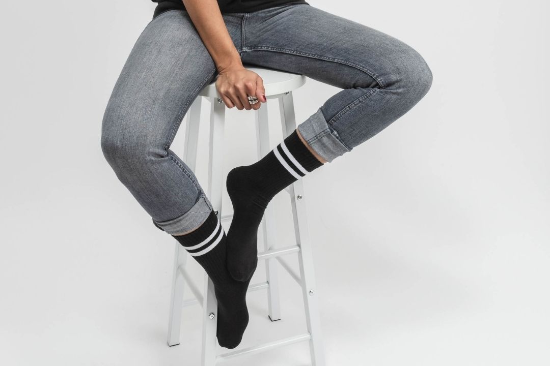 MATERIALEIGENSCHAFTEN: Unsere retro Tennissocken für Damen (Modell: Serena) bestehen aus einem klassischen Baumwoll-Polyamid-Gemisch und sind damit den Anforderungen beim Sport ideal gewachsen. Dabei verbinden sich die besten Eigenschaften der Stoffe, d.h. der Tragekomfort und das Feuchtigkeitsverhalten von Baumwolle mit der Atmungsaktivität und Strapazierfähigkeit von Polyamid. Die Beimischung von Elasthan sorgt für eine gute Passform.