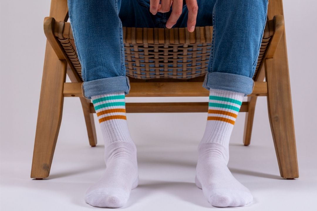 PERFEKTER HALT, TOLLER LOOK: Elastischer Bund, gerippter Schaft, Stretchzonen, flache Nähte & Frotteesohle - ideale Socken für Sport und Freizeit im Retro-Look.