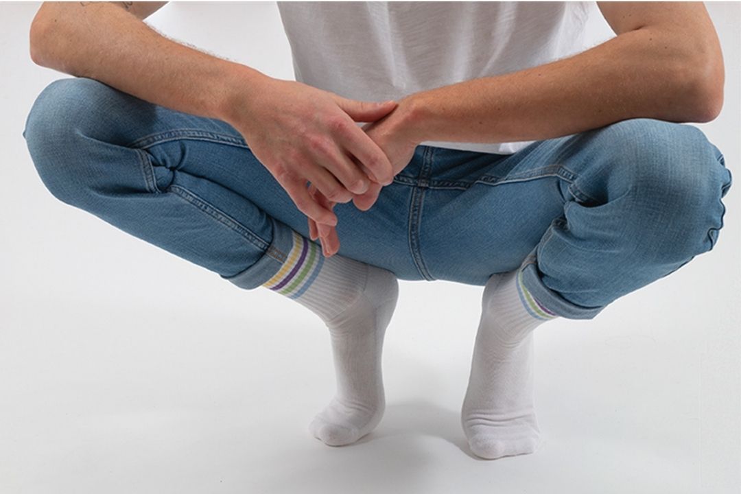 MATERIAL: Unsere Retro-Tennissocken für Herren (Modell: Roger) bestehen aus einem Baumwoll-Polyamid-Gemisch mit Elasthan.